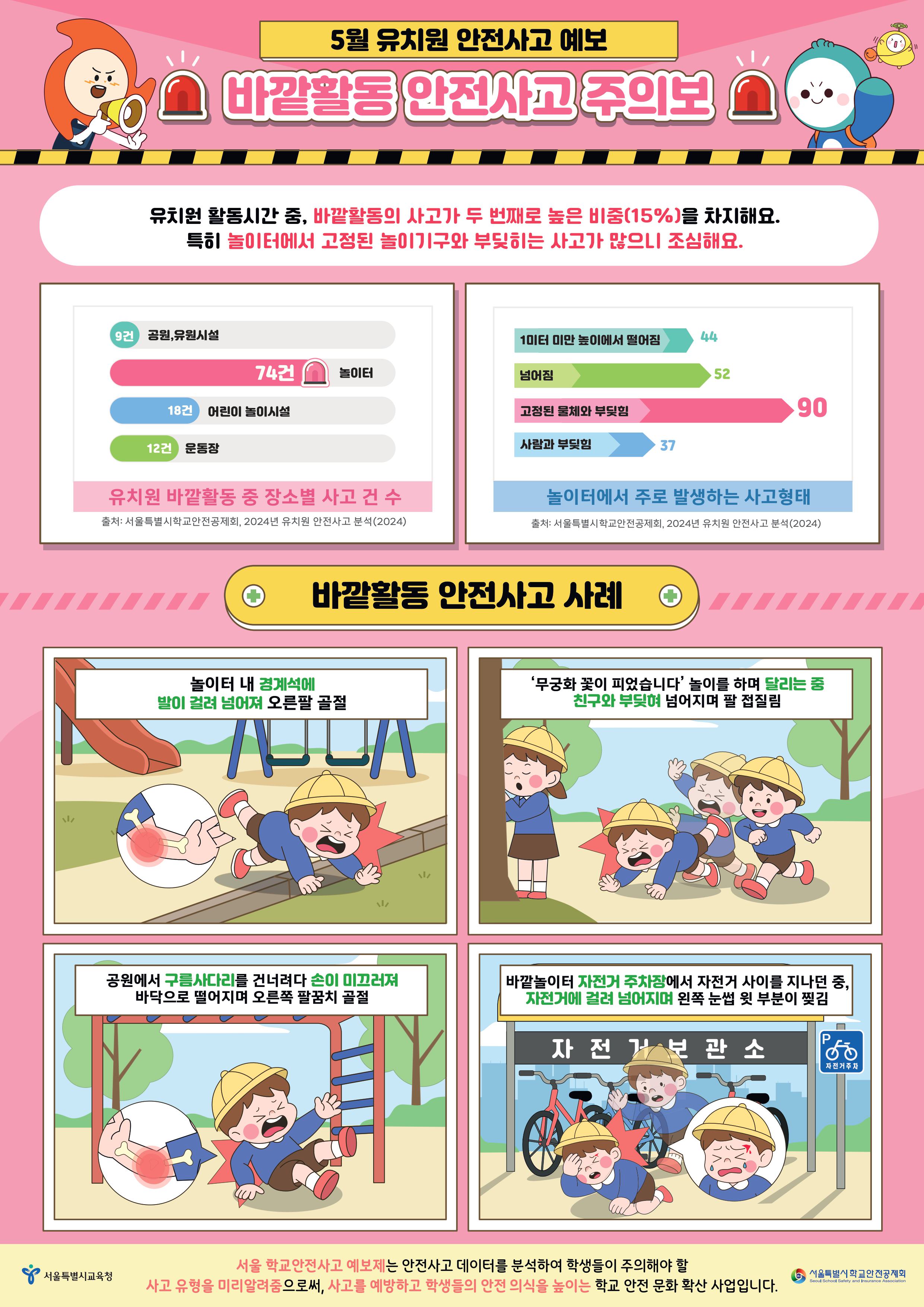 서울지역 최근 5년간의 집적된 학교안전사고 데이터, 학교별 교육계획, 기후상황 등을 다각도로 분석하여 다빈도로 발생하는 사고 유형을